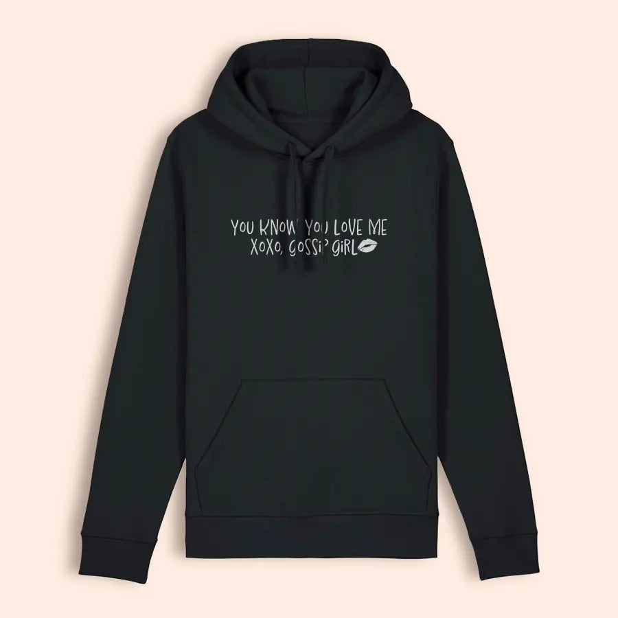 Emporte tes séries et films préférés partout avec ce hoodie (sweat à capuche) haute qualité, en coton biologique : "You Know You Love Me". Un design exclusif signé PopCorn Nation.